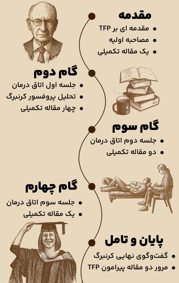 ویدئو جلسه اول اتاق درمان به همراه تحلیل پروفسور کرنبرگ، سؤالات آموزشی، مقاله درآمدی بر مصاحبه ساختاری TFP، چگونه مراجعم را بفهمم، احساس پوچی و سازمان شخصیت مرزی